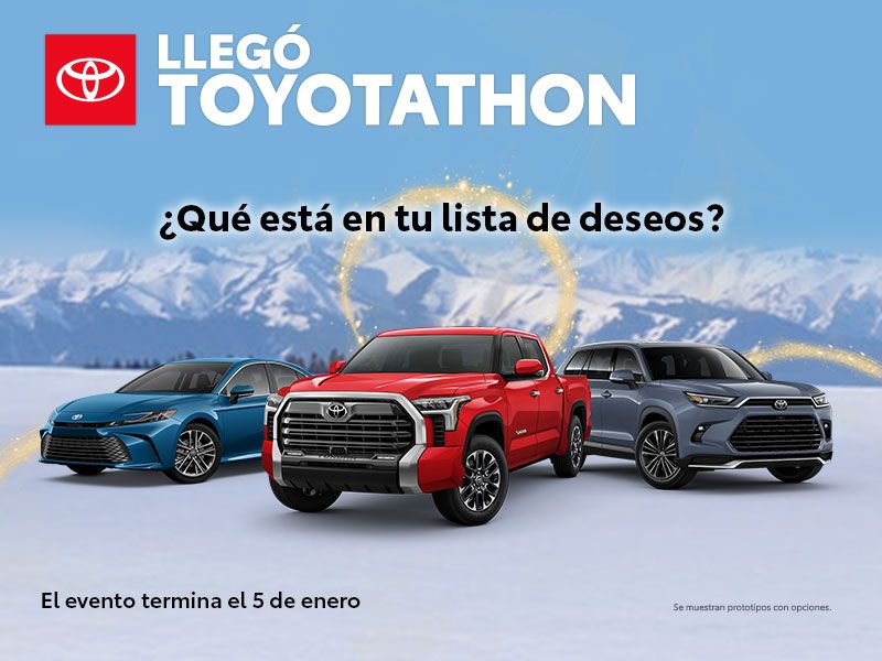 • Cantidades Limitadas Disponibles. ToyotaCare: Cubre el servicio normal programado de fábrica. Plan de 2 años o 25,000 millas, lo que ocurra primero. El vehículo Toyota nuevo no puede ser parte de una flota de alquiler ni comercial, ni proveer servicio de auto con chofer, ni ser taxi. Para detalles de la cobertura, consulta el plan. Para más detalles visita un concesionario Toyota participante. Válido solamente en los Estados Unidos continentales y Alaska. http://www.toyota.com/es/toyota-care/. Graduado Universitario: El Programa Toyota de Reembolso de $500 para Graduados de College está en efecto a partir 12-02-2025 hasta 01-05-2026. Ver más - https://www.toyotafinancial.com/us/en/financing_options/rebate_finance_programs/college_grad_program.html. Reembolso Militar: El Programa Toyota de Reembolso Militar de $500 está en efecto entre 12-02-2025 hasta 01-05-2026. Este programa está sujeto a cambios o cancelación en cualquier momento. Ver más - https://www.toyotafinancial.com/us/en/financing_options/rebate_finance_programs/military_rebate.html. *5 años en ahorros de gasolina comparado con el promedio de vehículos nuevos. * Consulta fueleconomy.gov para más detalles.** Toyota is KBB.com’s Most Trusted Brand for 2023: https://www.kbb.com/awards/brand-image-awards/. Los Brand Image Awards de Kelley Blue Book 2023 se basan en el estudio Brand Watch™ de Kelley Blue Book. Premio calculado entre los compradores que no son de lujo. Para más información, visita KBB.com de Kelley Blue Book. Kelley Blue Book es una marca registrada de Kelley Blue Book Co., Inc.